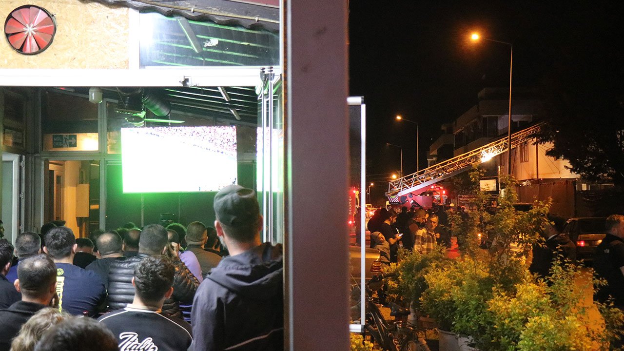 Ekiplerin söndürmek için seferber olduğu ve mahallelinin panikle sokağa döküldüğü yangında, bir işletmedeki bazı vatandaşlar ise Galatasaray-Fenerbahçe arasında oynan derbiyi izlemeye devam etti. Maç sırasındaki bazı ataklarda sevinen, bazı ataklarda sinirlenen taraftarların o anları dikkat çekti.